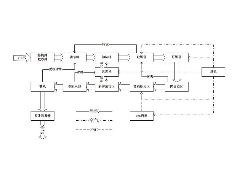 針對(duì)污水水質(zhì)的特點(diǎn),采用常規(guī)的“A2O生物接觸氧化·紫外線消毒”工藝,該處理工藝較為簡(jiǎn)單,操作運(yùn)行方便,日常費(fèi)用低廉,出水穩(wěn)定,處理效果好,是目前較為成熟的生活污水處理工藝,能有效地確保污水達(dá)標(biāo)回用或排放。主要設(shè)備為鋼結(jié)構(gòu),考慮到周邊環(huán)境和衛(wèi)生問(wèn)題,污水處理工程科采用全埋地式結(jié)構(gòu),上部覆土,種植花木、草坪,進(jìn)一步每戶環(huán)境。