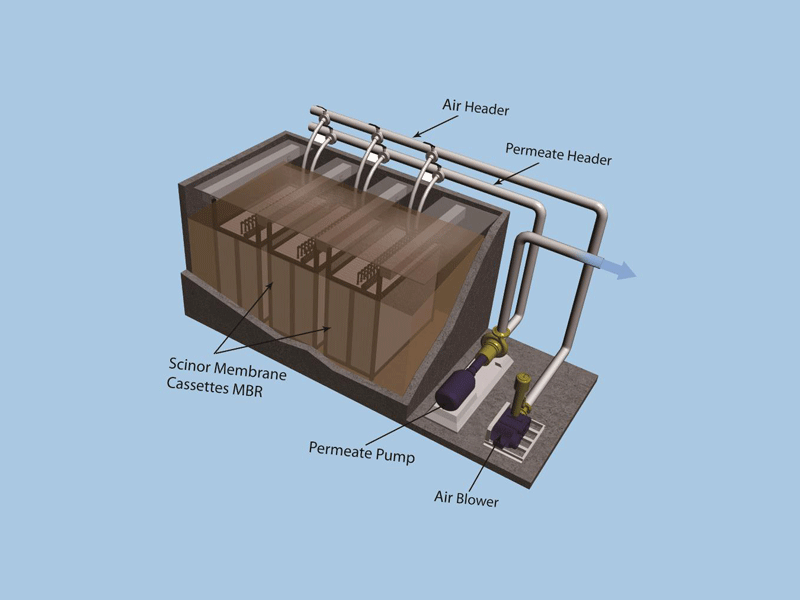 MBR 系列產(chǎn)品采用 TIPS 法制備的 PVDF 增強(qiáng)型中空纖維膜,具有大通量、耐藥洗等特點(diǎn)同時(shí),其機(jī)械強(qiáng)度大大提高,結(jié)合均勻的分絲排布及組器設(shè)計(jì),可降低污泥沉積,減小斷絲風(fēng)險(xiǎn)。組件、膜箱、曝氣及集水優(yōu)化整合為成套過(guò)濾系統(tǒng),運(yùn)行能耗降低,膜池占地面積相對(duì)常規(guī) MBR 節(jié)省 1/3,安裝維護(hù)更加便捷。